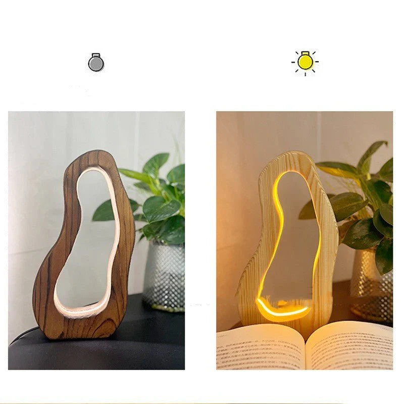 Hollow Design LED Simple Style Desktop Wooden Table Lamp