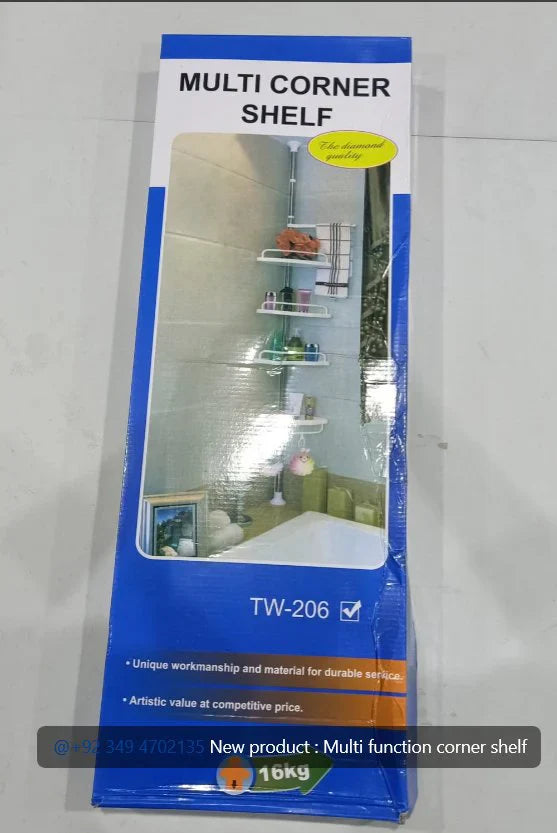 ✅Description Multi-Function Corner Shelf – A space-saving telescopic organizer for bathrooms, ideal for holding shampoo, soap, and more.