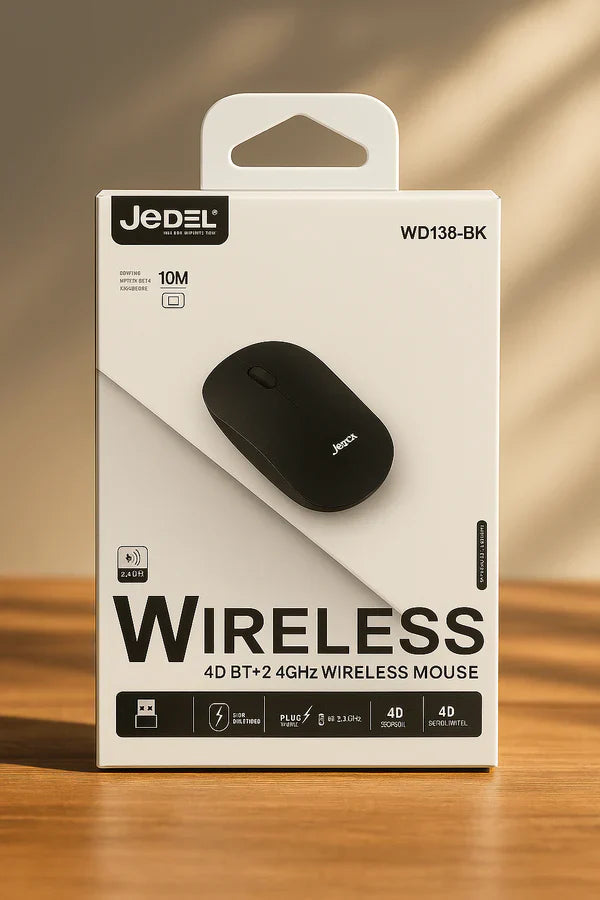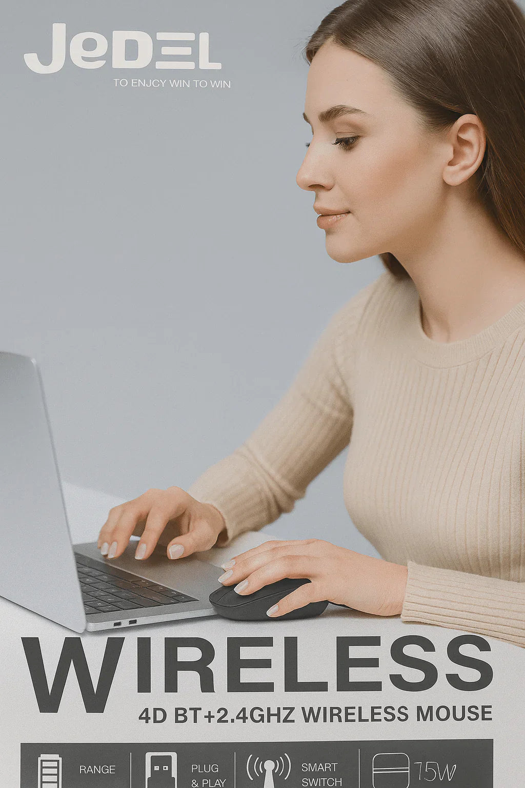 Jedel Wireless Mouse – A dual-mode mouse with Bluetooth 4D and 2.4GHz connectivity, offering smooth, low-power, and long-range performance up to 10 meters.