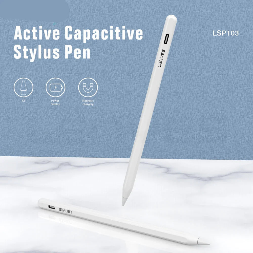 Lenyes Active Stylus Pen – A 2-in-1 rechargeable stylus pen compatible with multiple iPad models, featuring anti-mistouch functionality and precise strokes for smooth, natural writing and drawing.