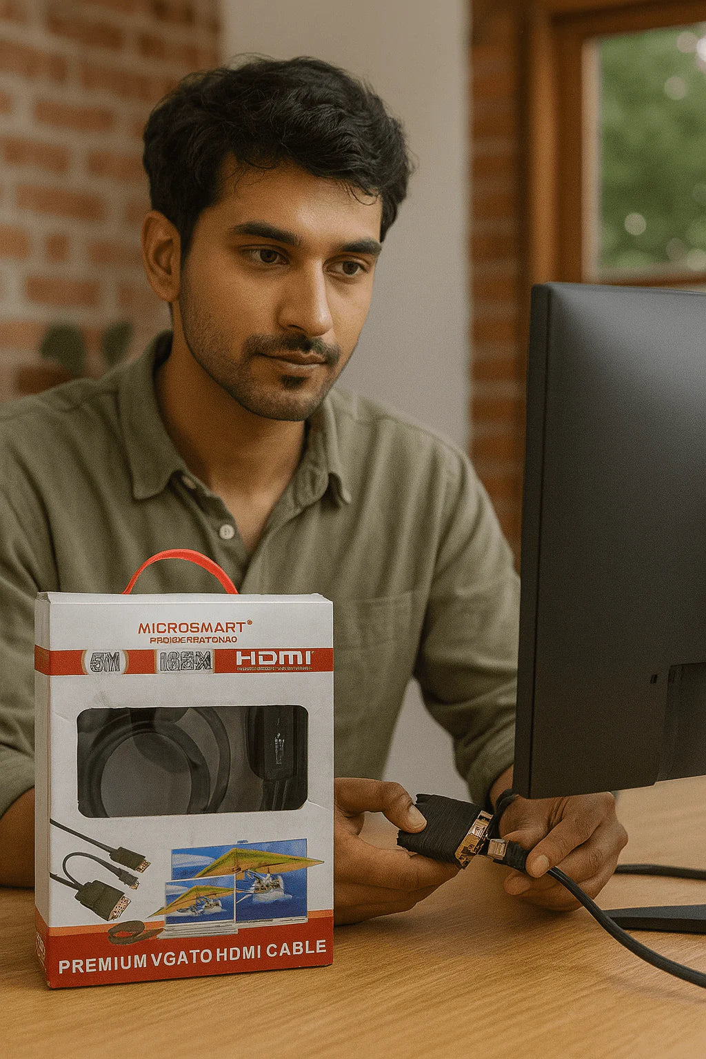 Microsmart VGA to HDMI Cable (5M) – A premium 5-meter adapter cable that converts VGA signals to HDMI output, allowing older devices to connect to modern displays with clear audio and video.
