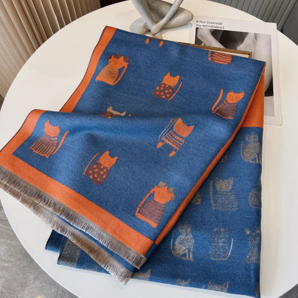 Cute Kitten Plaid Contrast Color Cashmere Shawl Scarf